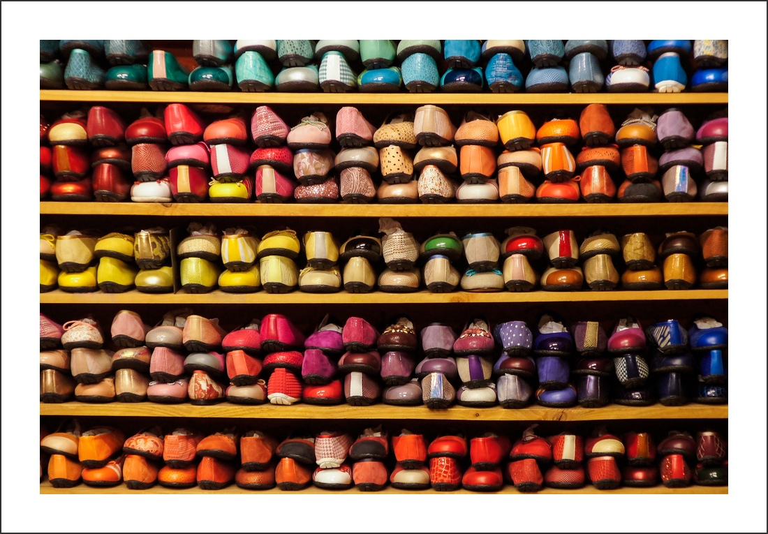 | Uno scatto interessante. Come già fatto notare da altri , il taglio superiore è leggermente invalidante. Perché non eliminare del tutto l'ultima fila di scarpe e far finire la foto a fine mensola ? Vero è ,anche , che verrebbe a mancare la nota di colore azzurro in contrasto con le altre giallo-rosse......Mi piace. Un saluto, guido |