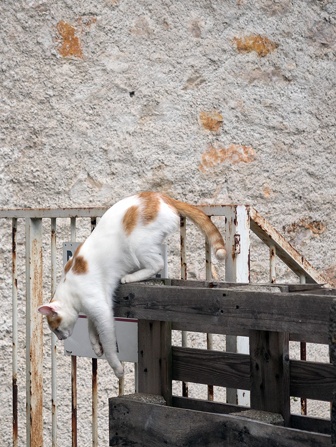 Bellissimo il momento colto,le macchie di ruggine e le pietre del muro ben si abbinano al manto di questo micio acrobata.Ottima immagine! Ciao,Sergio.  _________________ Sergio Demitri https://www.flickr.com/photos/124946035@N02/ |