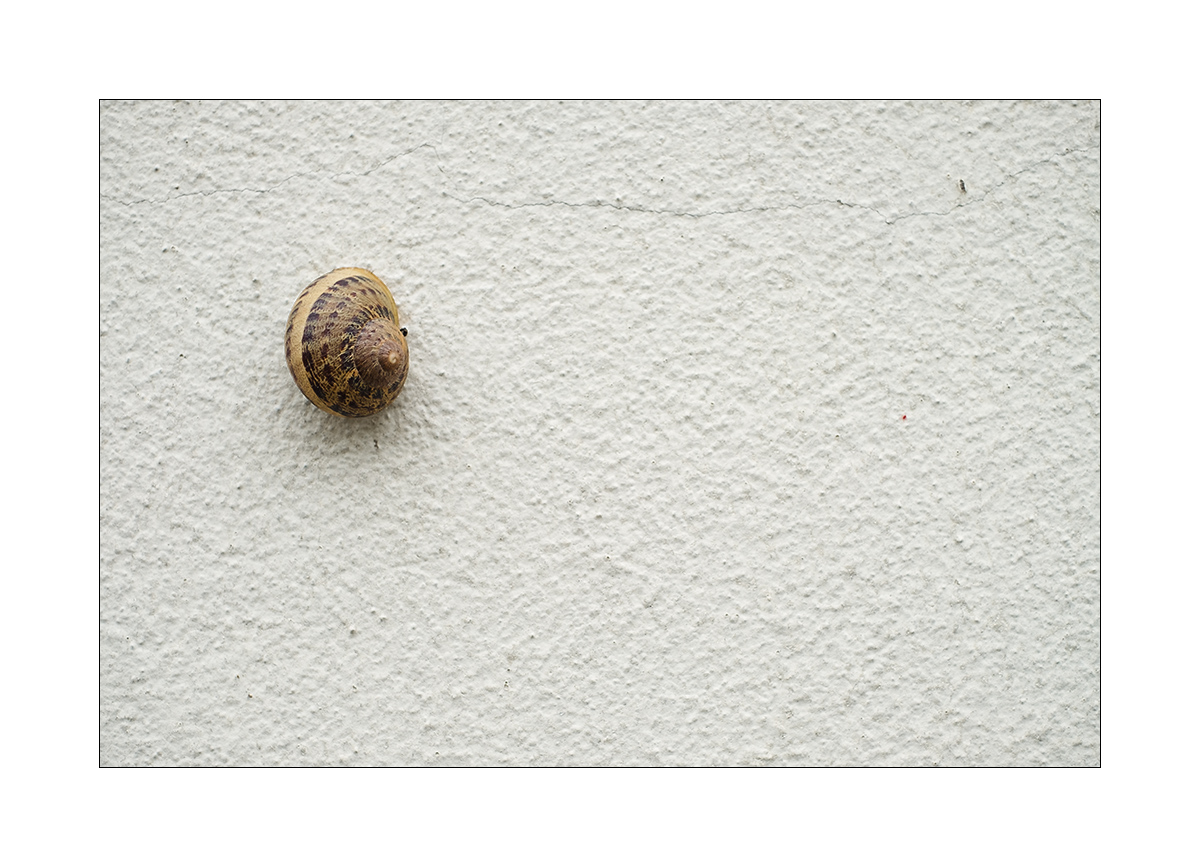Composizione esemplare, texture rugosa e materica. Calibratissima nei toni. Fa tenerezza la chiocciolotta così sola e timida in quel vasto biancore.