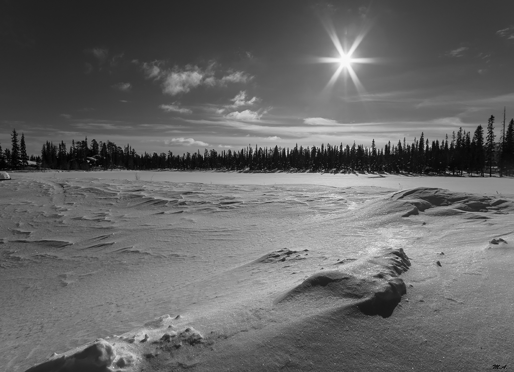 Quel sole ....come una splendida stella fredda, che accarezza la neve ghiacciata e rende frizzante e tagliente ogni dettaglio. Molto bella.