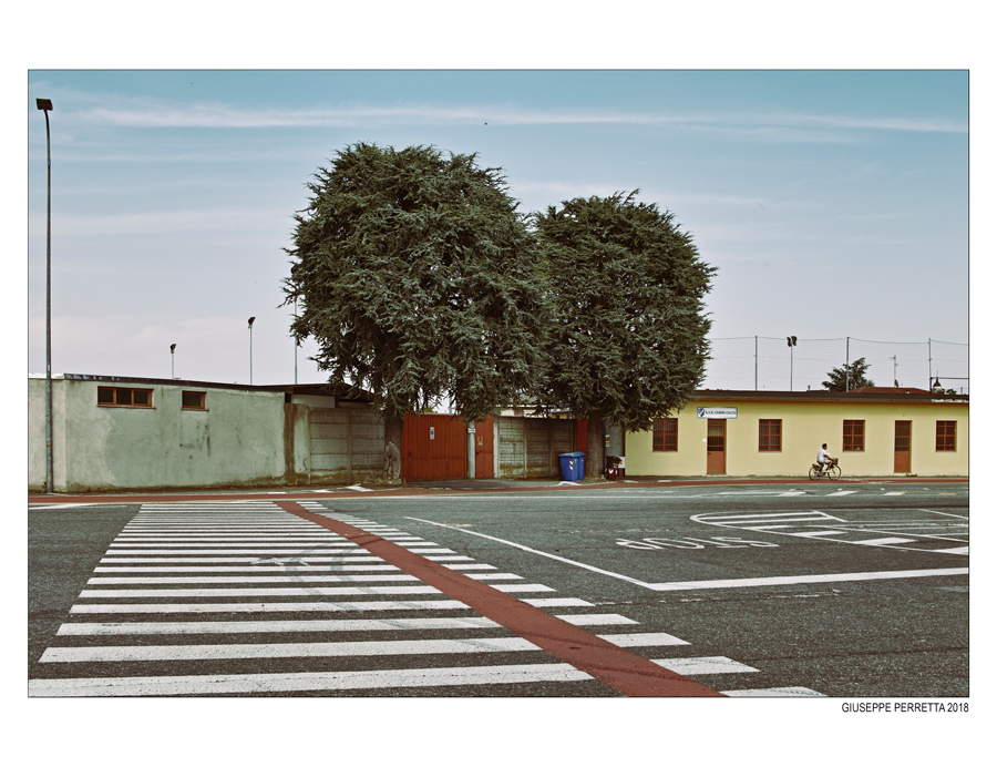 Avrei fatto, se possibile, 2 passi indietro e uno a sx, motivo ?...avere le strisce zebrate del passaggio pedonale che partissero dall'angolo basso sx e il lampione un pochino più distaccato dal bordo frame...per il resto mi piace questo paesaggio urbano dai toni delicati e un po retrò, la figura umana in bicicletta la differenza tra una foto e una bella foto