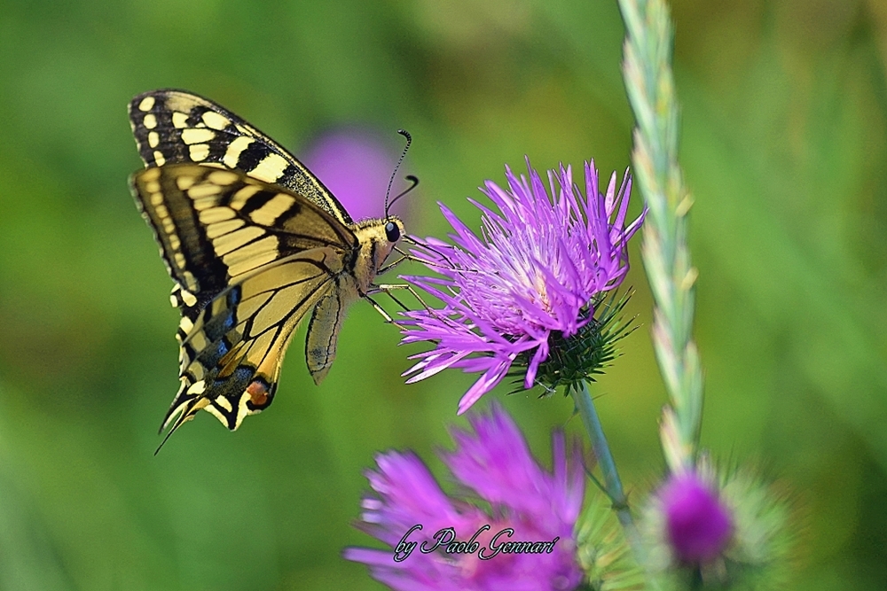 Mi piace la composizione con la codina del macaone che punta dritta l'angolo inferiore sinistro. Proverei ad abbassare il rumore sullo sfondo. Buona cattura. _________________ Giuseppe Zizzi |