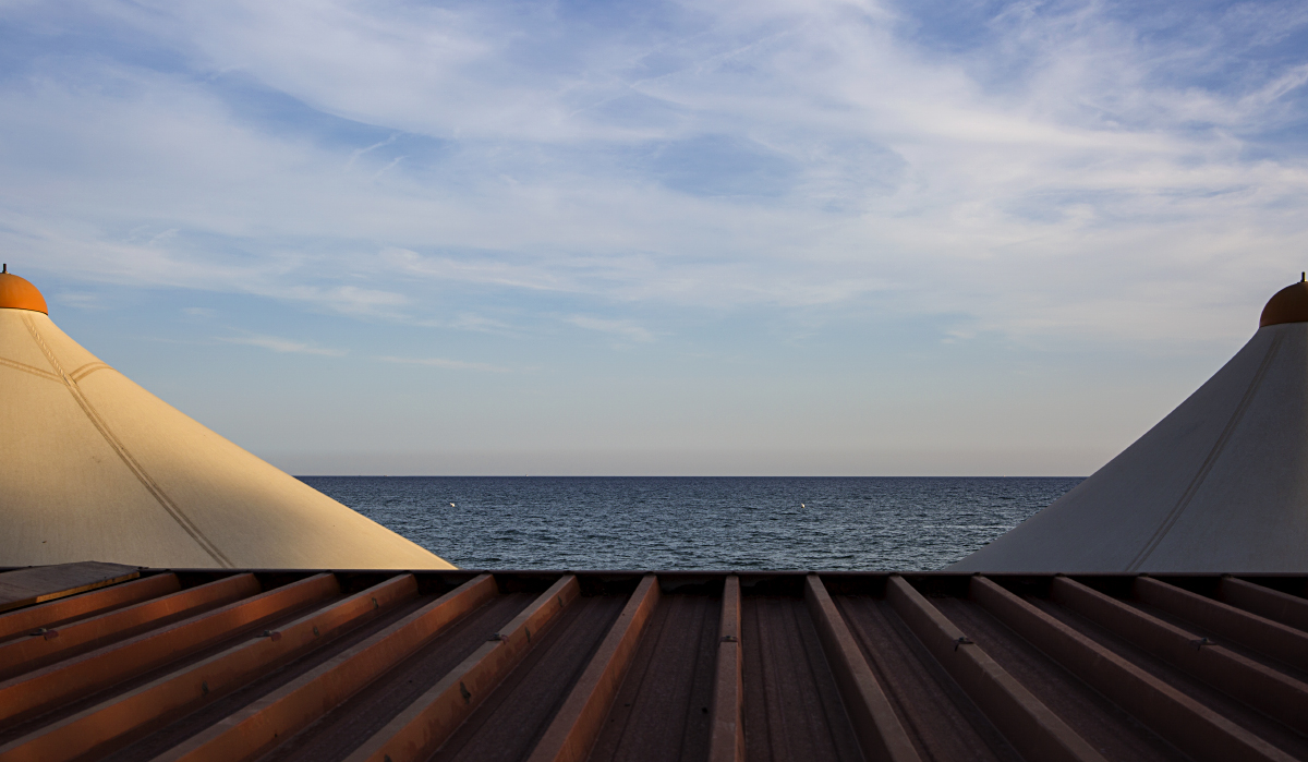 Buona compo e bella simmetria, unico neo a cui avresti potuto rimediare con una clonatina i due uccelli (presumo gabbiani) che "sporcano" la perfetta simmetria degli altri elementi.