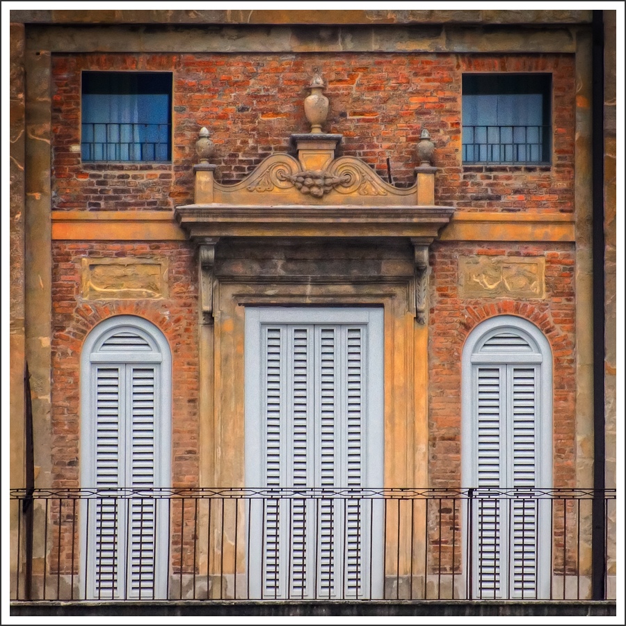 Un modulo sulla modulazione di frequenza che non solo io saprò apprezzare. Il parilato,la composizione millimetrica che soddisfa la’maniacalita’ non becera ma di Scuola, cromie calde e fredde, forme geometriche delle tue finestre sposate ad elementi ‘mossi’, architettura e varie per uno scatto che mi piace molto. Una leggera correzione del ‘baule’ in basso ed opla’ ...