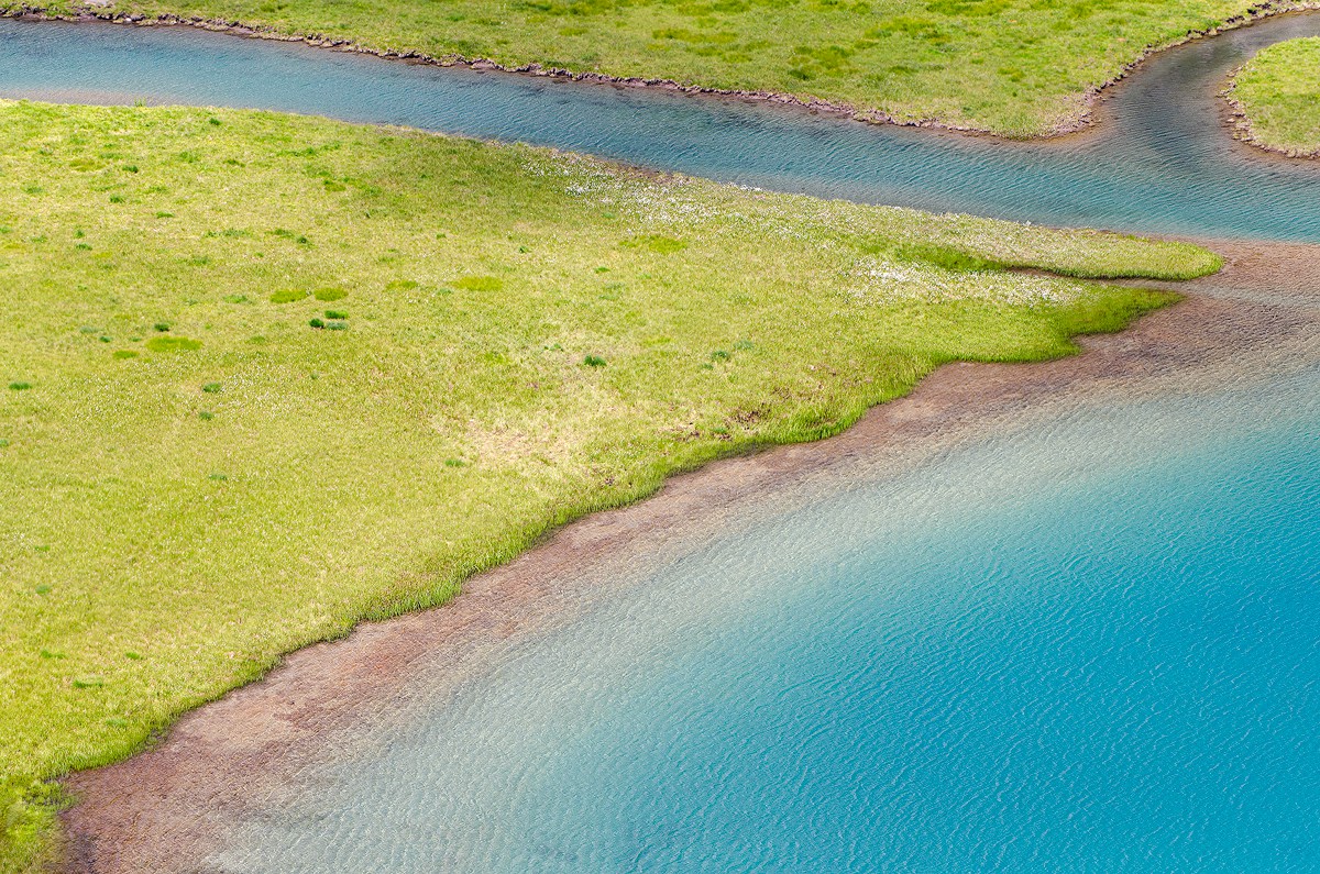 Che bella anche questa!!Vivissime le tonalità che si alternano e si completano. Bellissimo il modo in cui la percepiamo,dal morbido punteggiare del verde al tremolante ondeggiare del turchese sino al concreto bruno della terra che definisce il tutto.Un quadro dipinto con le vibrazioni della natura . Ciao