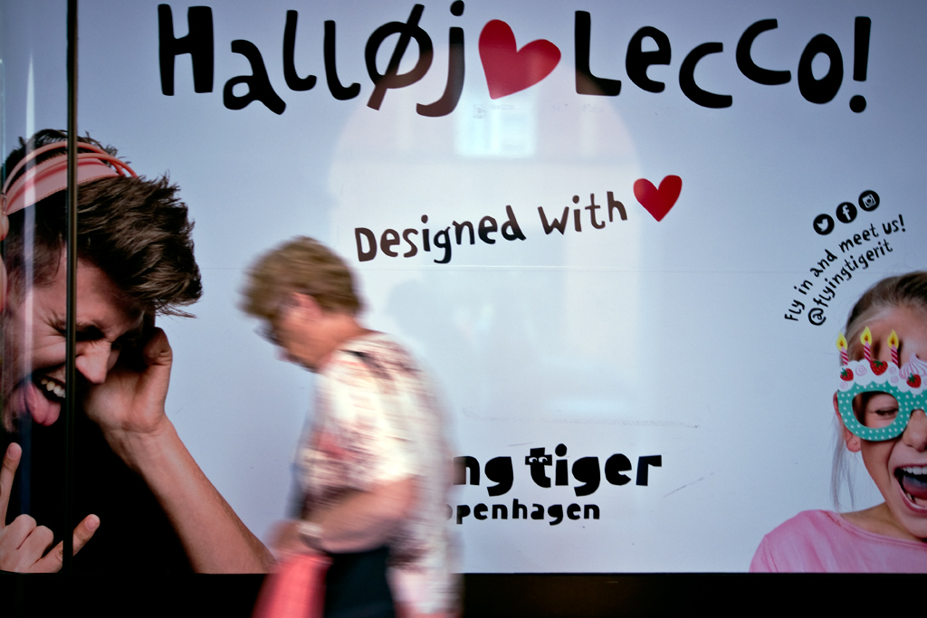 L`anziana danese sembra scappar mia dal frastuono di quest`opening Tiger event` per l`urlo della bambina e la musica del DJ.