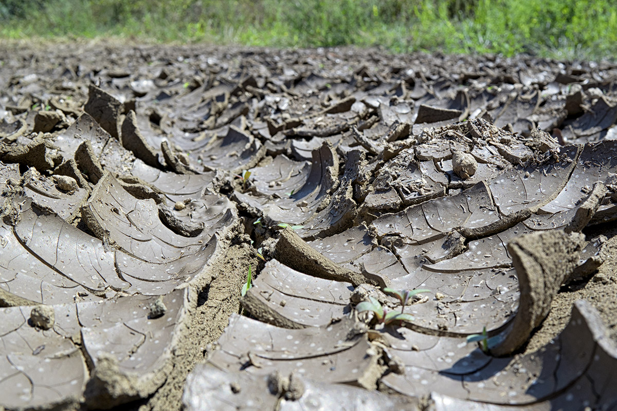 Terra bruciata, terra spaccata...caldo e siccità ben rappresentati...anche per me di troppo quella piccola fascia verde sopra.