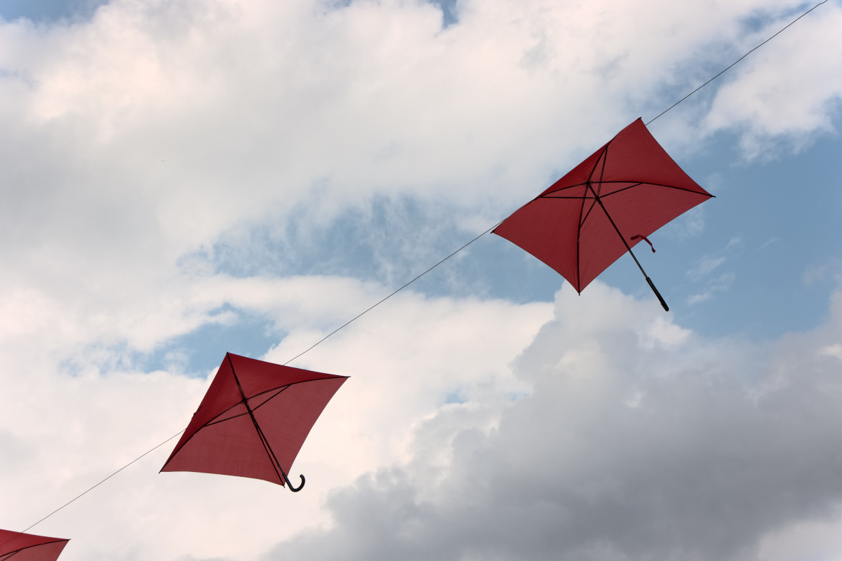 aquiloni ombrello dipingono di rosso il cielo, diagonale perfetta, ciao