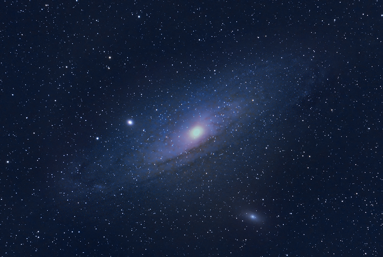 Si tratta della nostra galassia gemella, quella più vicina, l'oggetto astronomico catalogato con la sigla M31. La galassia di Andromeda è il primo obiettivo che mi ero prefissato di raggiungere con il mio nuovo setup.