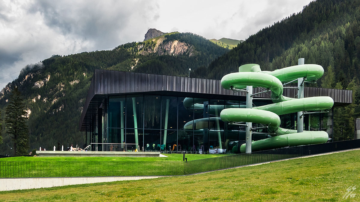 Ciao Mau, la parte paesaggistica in questa tua, prende il sopravvento. La parte architetturale, la struttura con lo scivolo e' posizionata in parallelo ai monti e in alto rispetto alla base di appoggio, lasciando molto prato e ringhiera ben visibile, in pratica ci dai la tua lettura, ovvero quella di ambientare, al meglio, l'edificio con scivolo all'interno del Paesaggio. E' altersi' vero' che la inserisci nella Sezione Architettura, allora mi chiedo perchè non avvicinarsi maggiormente ed escludere gli altri soggetti?