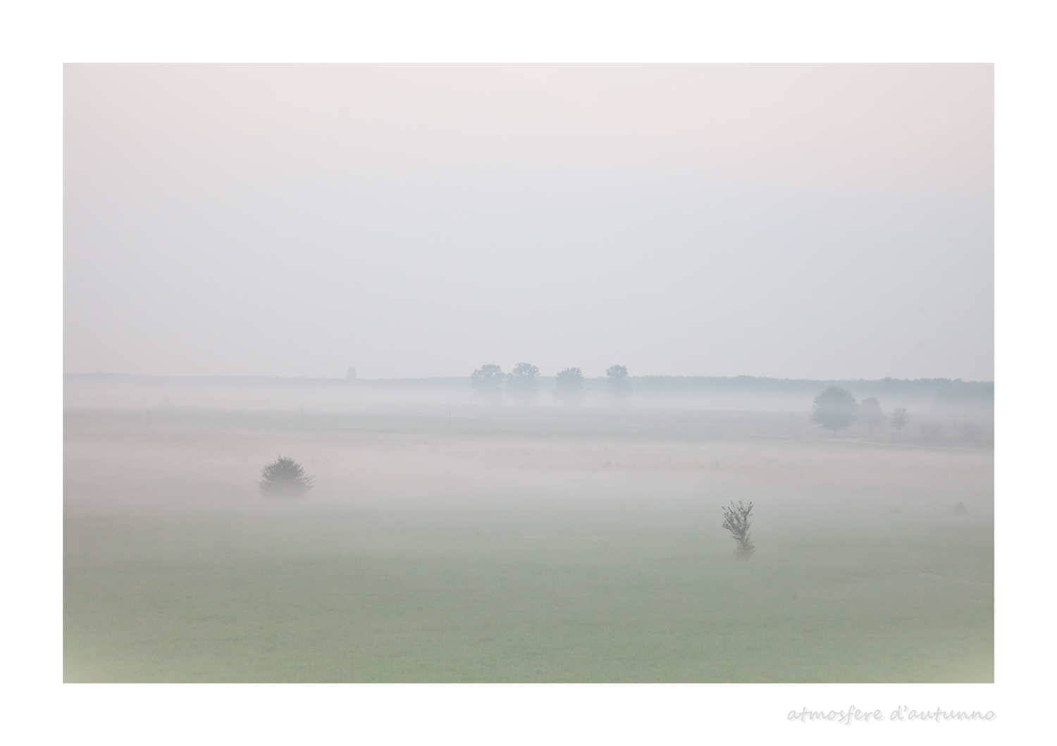 Poche forme accennate che emergono dalle brume mattutine. D'atmosfera...