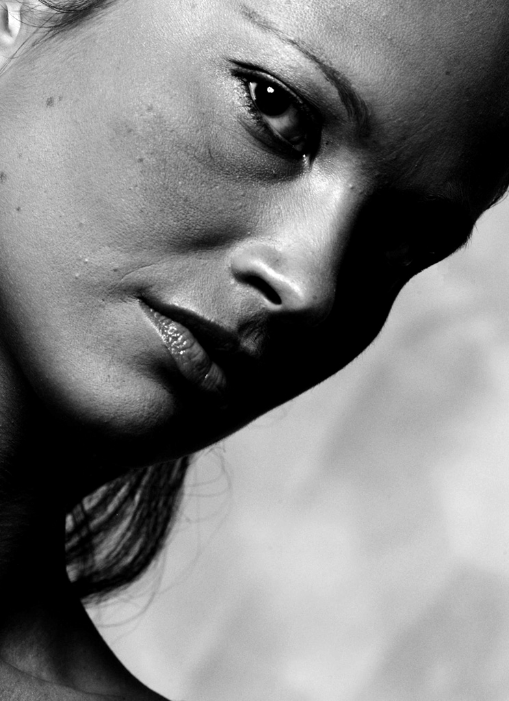 ciao, il taglio che hai scelto è molto suggestivo, il b/n è azzeccato l'unica cosa che farei è lavorare un pò in post per ammorbidire la pelle.