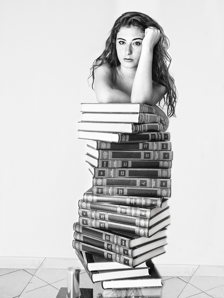 Piace molto anche a me Gian questa tua idea.. una colonna spiralata, a richiamare la catena del dna, fatta di sapere e scienza...lei molto disinvolta per posa ed espressione,ma pure un pochino contrariata dalla tanta lettura che la aspetta! Very Happy La realizzazione è molto buona..a parte come ti hanno già detto,qualcosa di migliorabile nella parte bassa.. ma c'è un vetro?In ogni caso,se proprio non si potevano nascondere meglio,almeno per me,via le scarpe e meglio a piedi nudi Smile Ciao