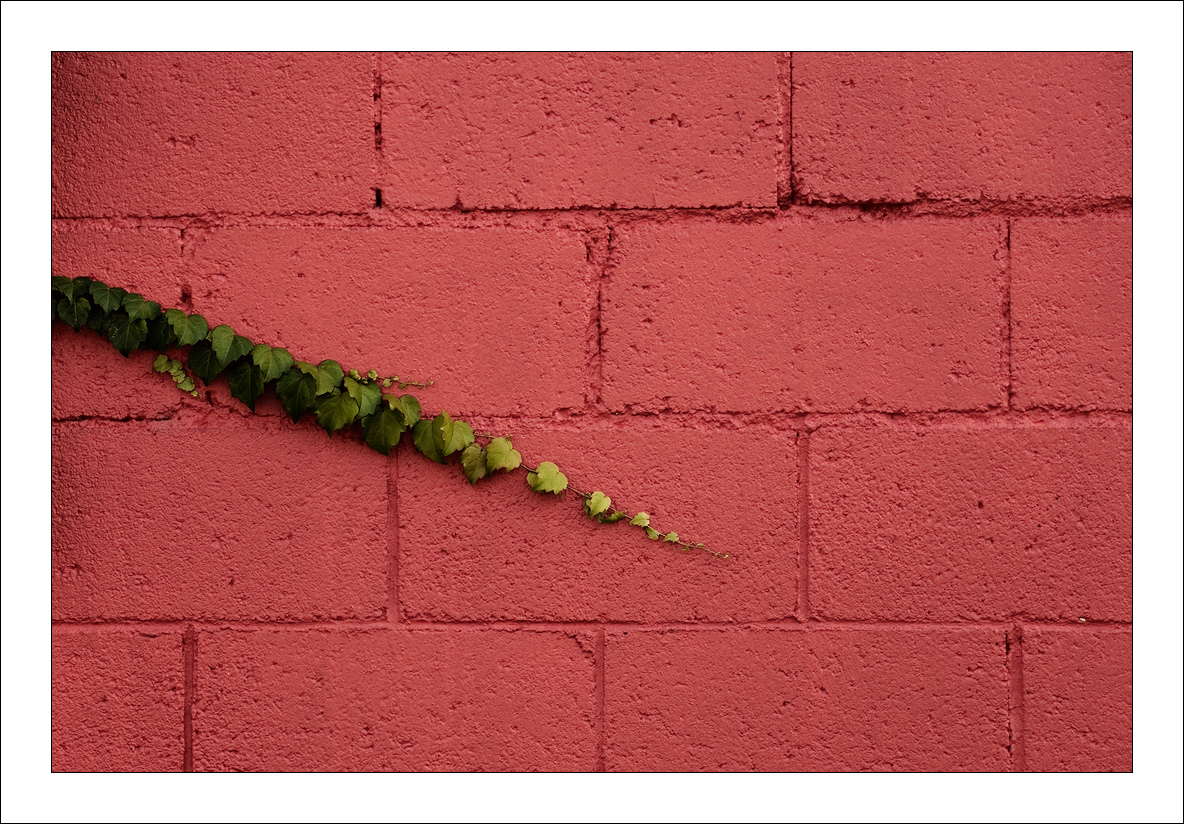 | Un'ottima prova, mi piace moltissimo l'accostamento fra complementari e il contrasto fra la ruvidezza del cemento e la morbidezza delle foglie. Qualcuno cerca di riappropriarsi dei suoi spazi vitali...