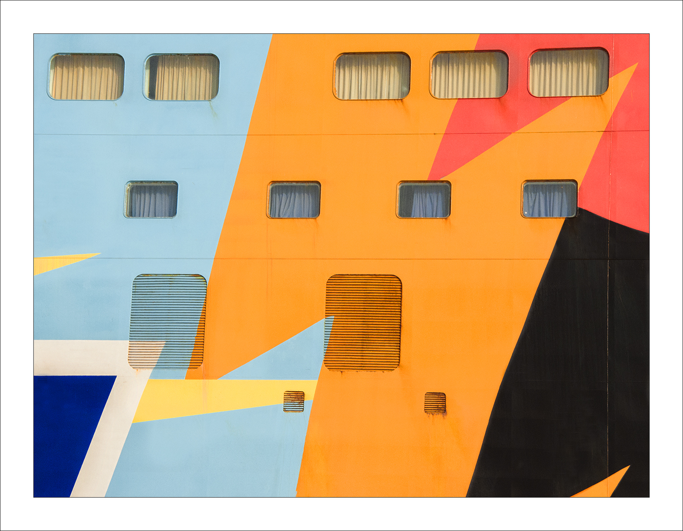 Allegra e colorata, una spensieratezza che, secondo le intenzioni degli armatori, dovrebbe venire trasmessa al passeggero già al momento dell'imbarco sulla nave. Mi pare che tu abbia saputo cogliere al meglio questi aspetti con una composizione che coglie il meglio di questo simpatico patchwork. Ciao  |