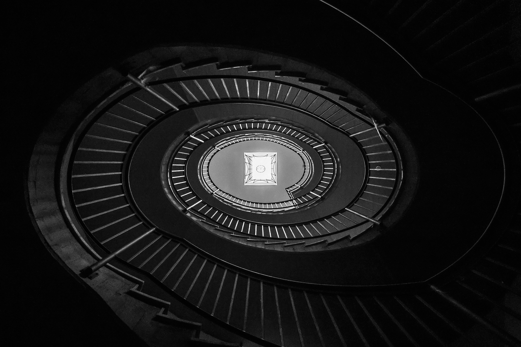 Un tocco di luce che permette di leggere tutta la scala e quel punto focale là in mezzo luminoso e protagonista.