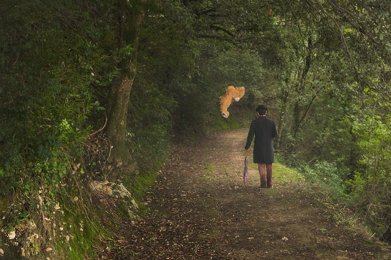 L'orsetto incombente in un bosco solitario evoca atmosfere alla stephen king.