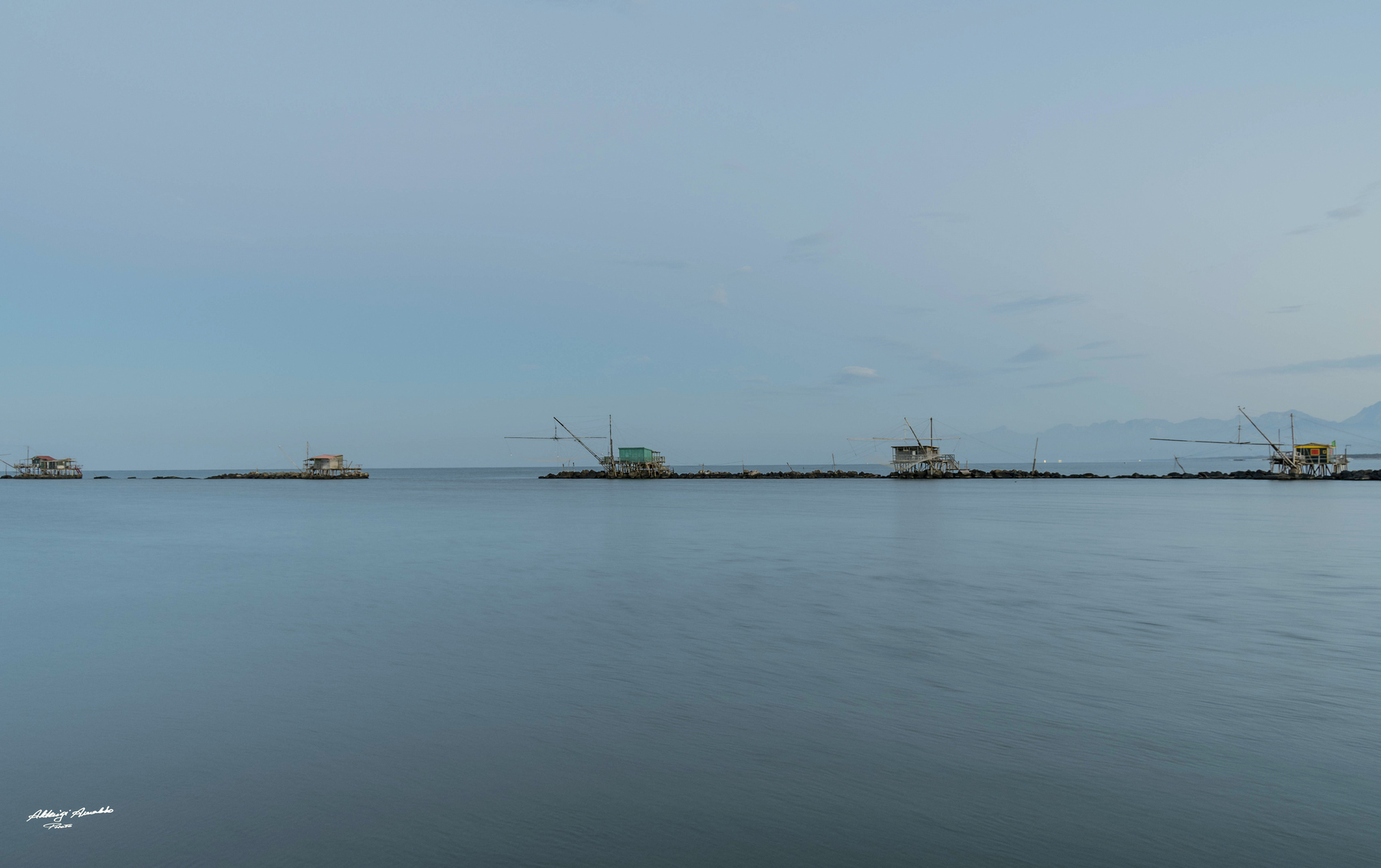 | Piacevole questo allineamento di trabucchi, una foto che ben descrive l'atmosfera delle prime ore dell'alba.un saluto, Guido |