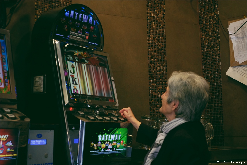 Un'immagine che a prima vista suscita ilarità. Un'anziana signora ancora irriducibile, lì a tentare la sorte. Ma dopo qualche istante la musica cambia, e ci si ricorda di quale piaga possa rappresentare la dipendenza da gioco d'azzardo. Mi auguro non sia questo il caso! Ma nella su doppia valenza, una foto riuscitissima! Ciao