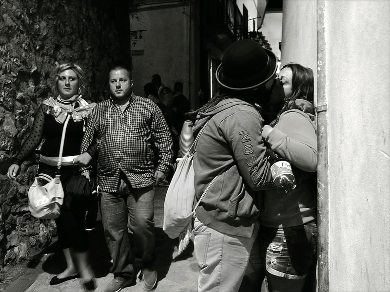 Vi confesso: è il mio primo bacio in street. Non mi sono mai appostato per riprendere le coppiette, sia per rispettare l'intimità di chi si trova dall'altro lato dell'obiettivo, sia per non suscitare reazioni dei soggetti stessi magari infastiditi.