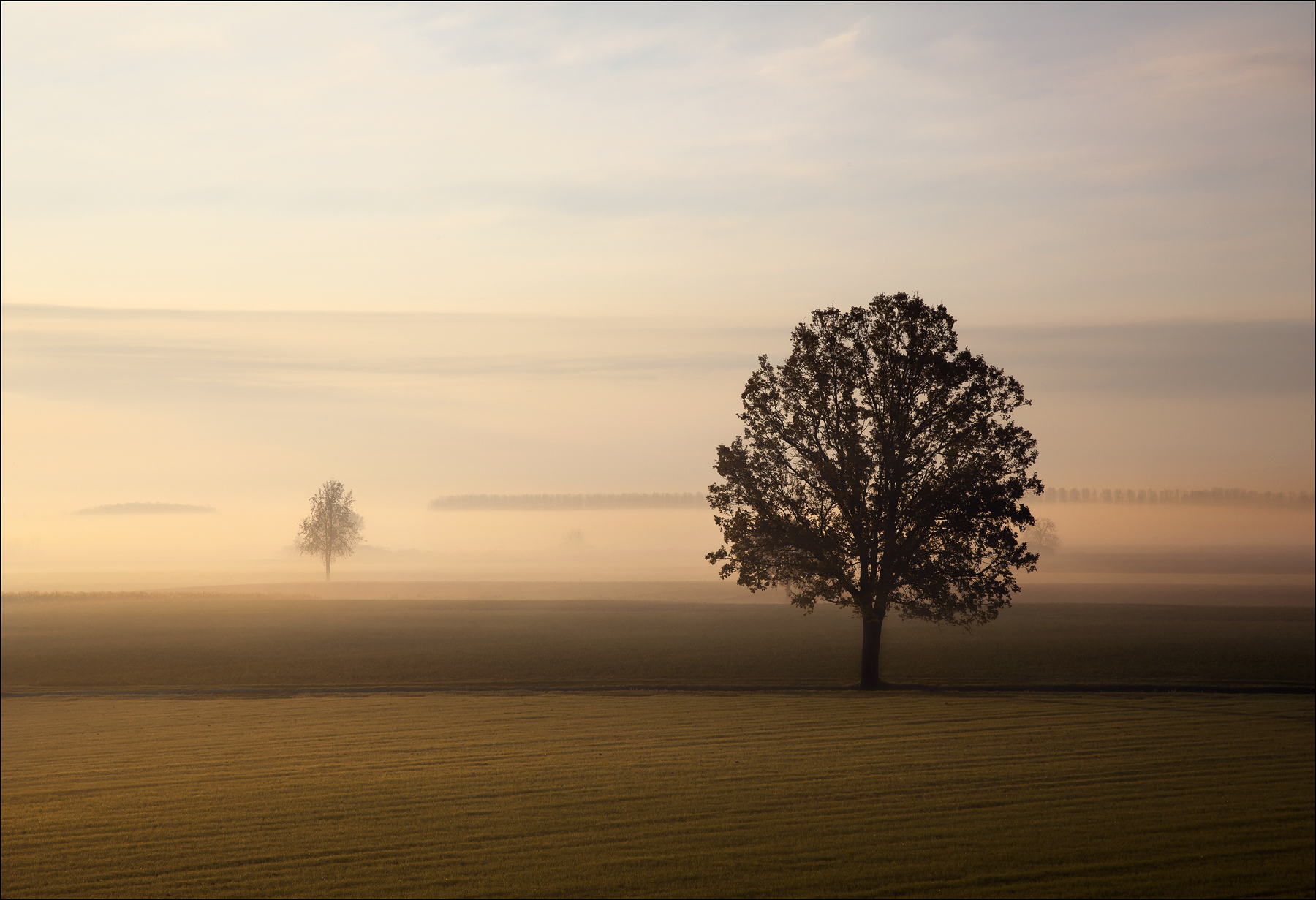 Ottima la composizione e luci..molto piacevole la nebbia che crea una striscia orizzontale a coprire oltre la metà la faggeta..Complimenti.Buona Giornata.