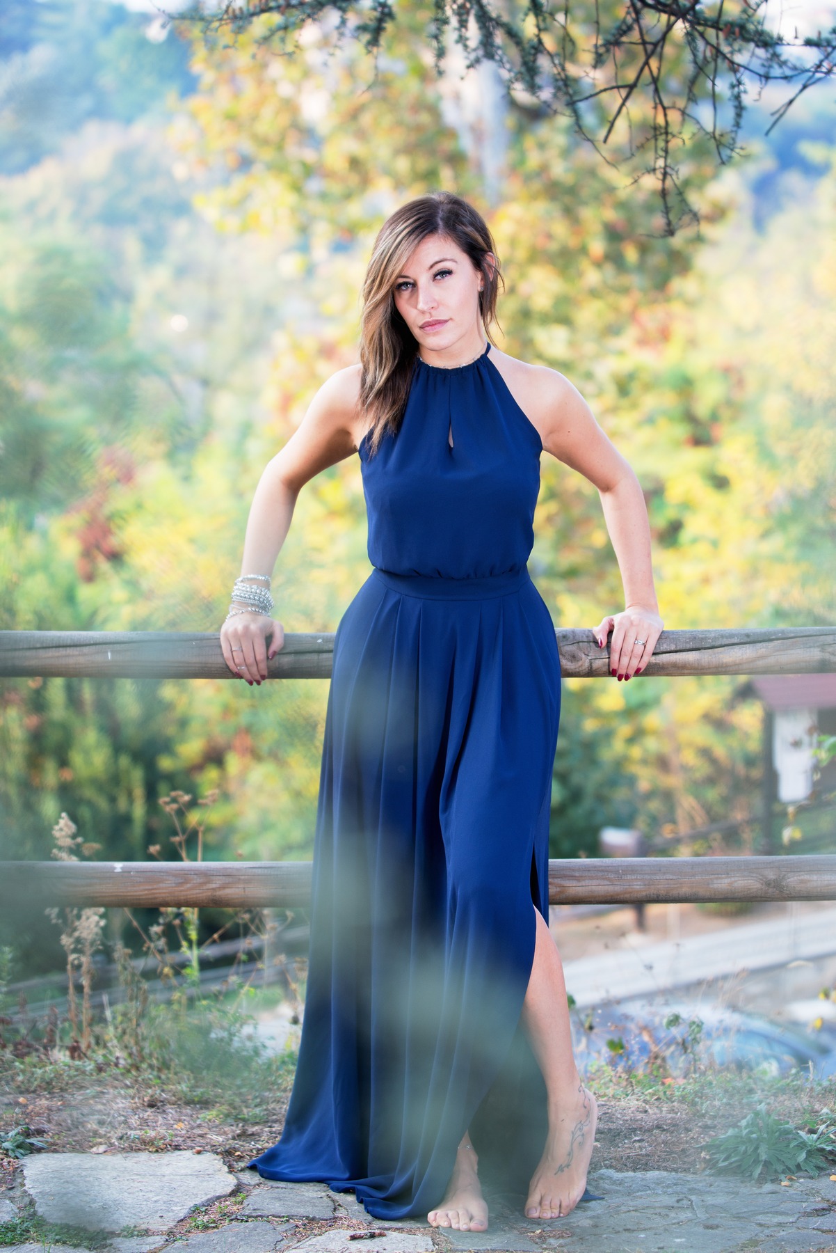 Ciao questa proposta non mi convince molto, secondo me ci sono elementi che disturbano la lettura: quella sfocatura in primo piano (che non ho capito se fatta in post oppure al momento dello scatto) cade anche sul collo del piede con quell'originale tatuaggio e quei rami sopra la sua testa che con un taglio secondo me sono da togliere.