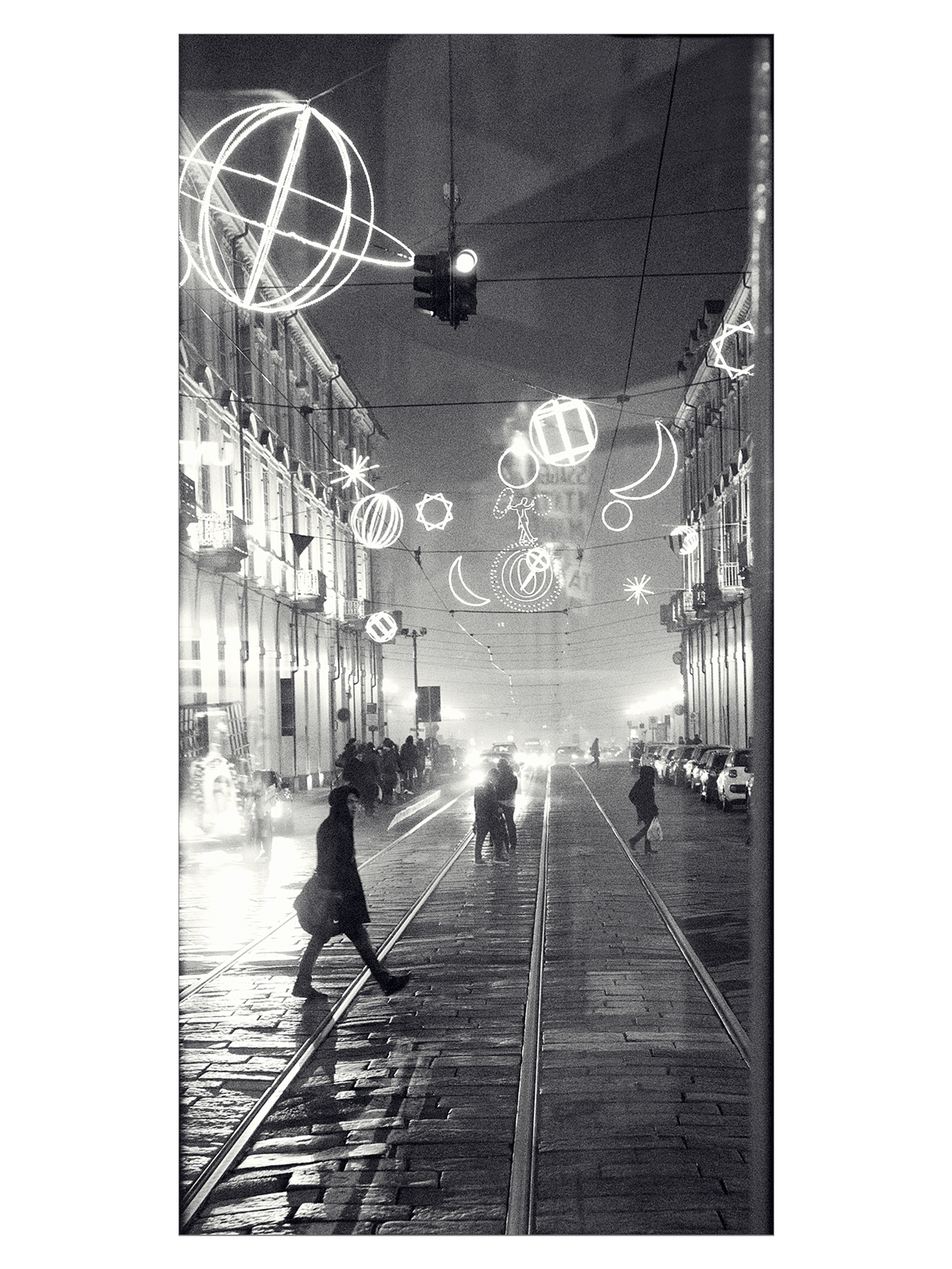 Via Po, complice il finestrino posteriore del tram hai restituito un'atmosfera da autunno/inverno fine anni '70 in un b/n da romanzo di Fruttero&Lucentini (a che punto è la notte?): la nebbia persino in centro, la pavimentazione lucida, i passanti frettolosi, le luci evanescenti ...