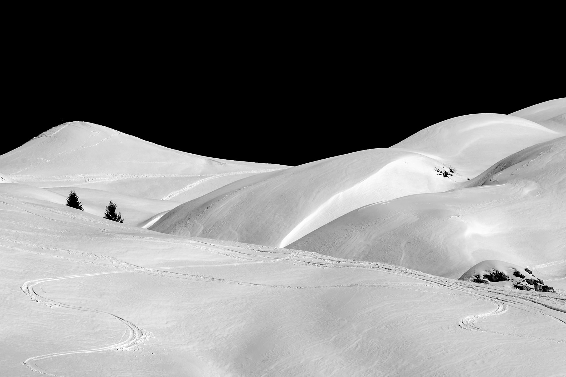 Le s contrapposte guidano l'occhio verso il centro, morbidamente innevato, in un b/n deciso, senza grigi. Ben vista Elis.