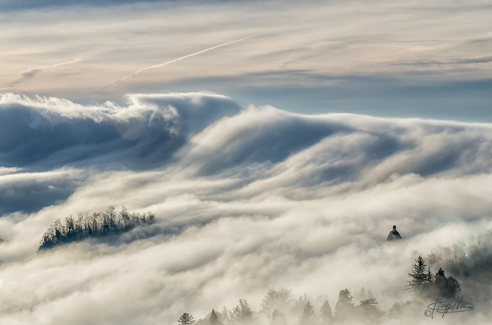 Molto bella, le nuvole sembrano una gigantesca onda schiumosa che sta inghiottendo ciò che incontra, ricordando anche le drammatiche vicende in Indonesia.