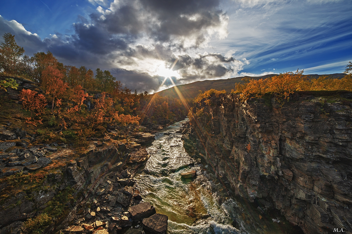 Ovviamente la pp è stata fatta su più scatti altrimenti a posto delle ombre sarebbe uscito solo un mare di rumore. Posto la versione che avevo fatto 3 mesi fa che era più naturale, il problema è che rispetto a quello che ho visto non era realistica, nel senso che la luce era fortissima tanto che non si riusciva a guardare in direzione del sole e questo illuminava tutto con la luce dorata della golden hour, quindi rocce e rosso della vegetazione autunnale era molto luminoso, quindi chiudere le ombre dava sì una sensazione più naturale ma non realistica per quello che ho visto io, per questo ho rielaborato tutto.
