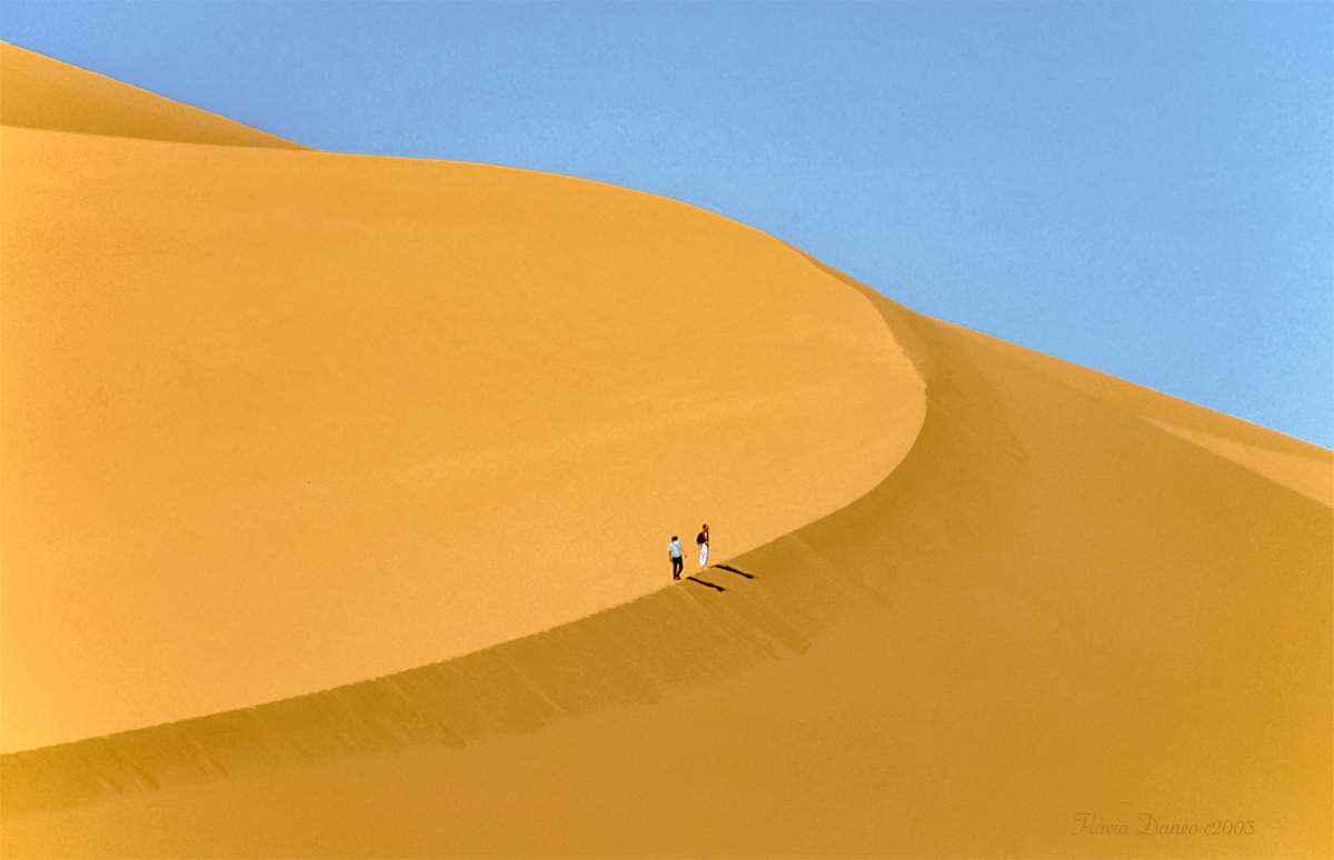 Bellissima nelle sue linee curve, una salita, che con l'apporto delle figure, rende anche le importanti proporzioni desertiche.