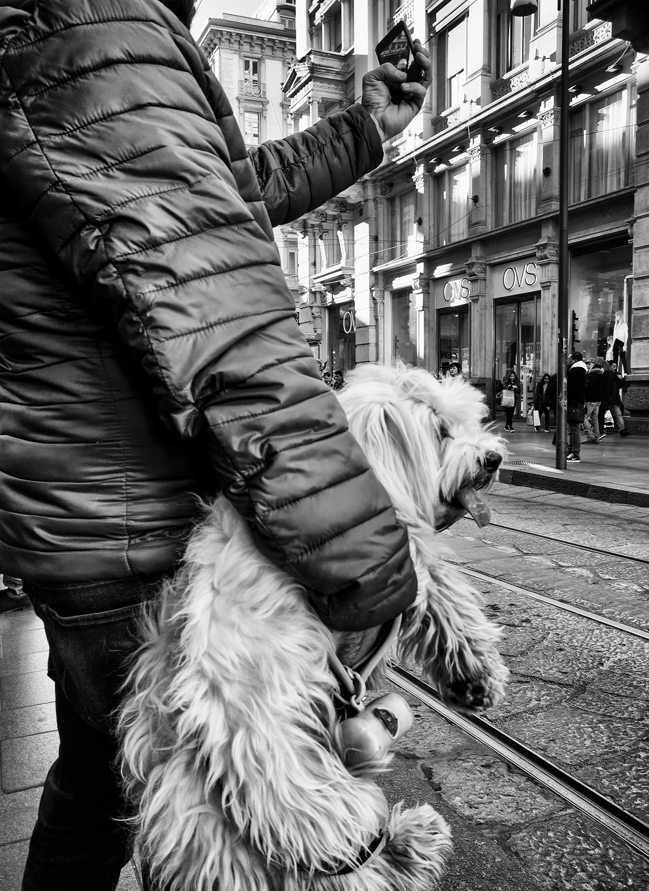 Grazie a tutti per i commenti e per le letture, è esattamente quello che mi ha colpito al momento dello scatto. Il signore stava facendo l'equilibrista (a scapito del povero cane da lui sorretto a malapena) pur di riuscire a scattarsi un selfie davanti alla vetrina di Victoria's Secret