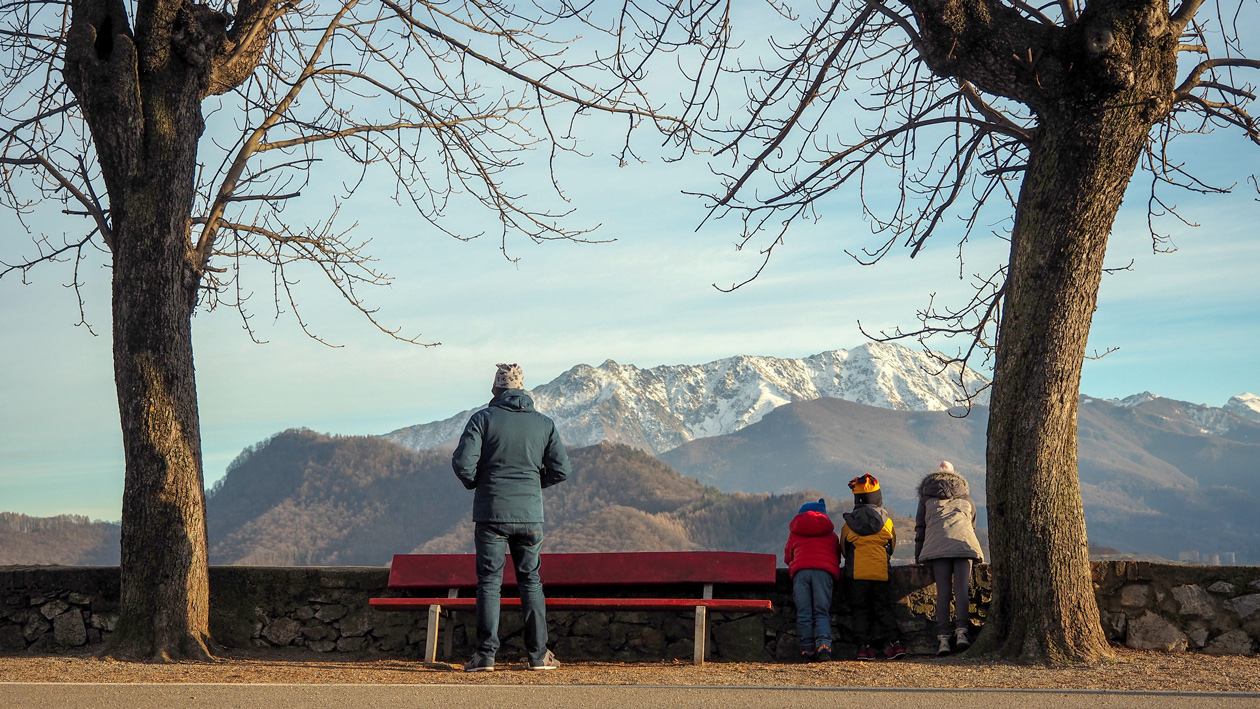 C'è chi guarda lontano, e chi appena sotto, un bel quadretto famigliare su di un fondale naturale e spettacolare. Belli i colori, naturali e la luce soffice.