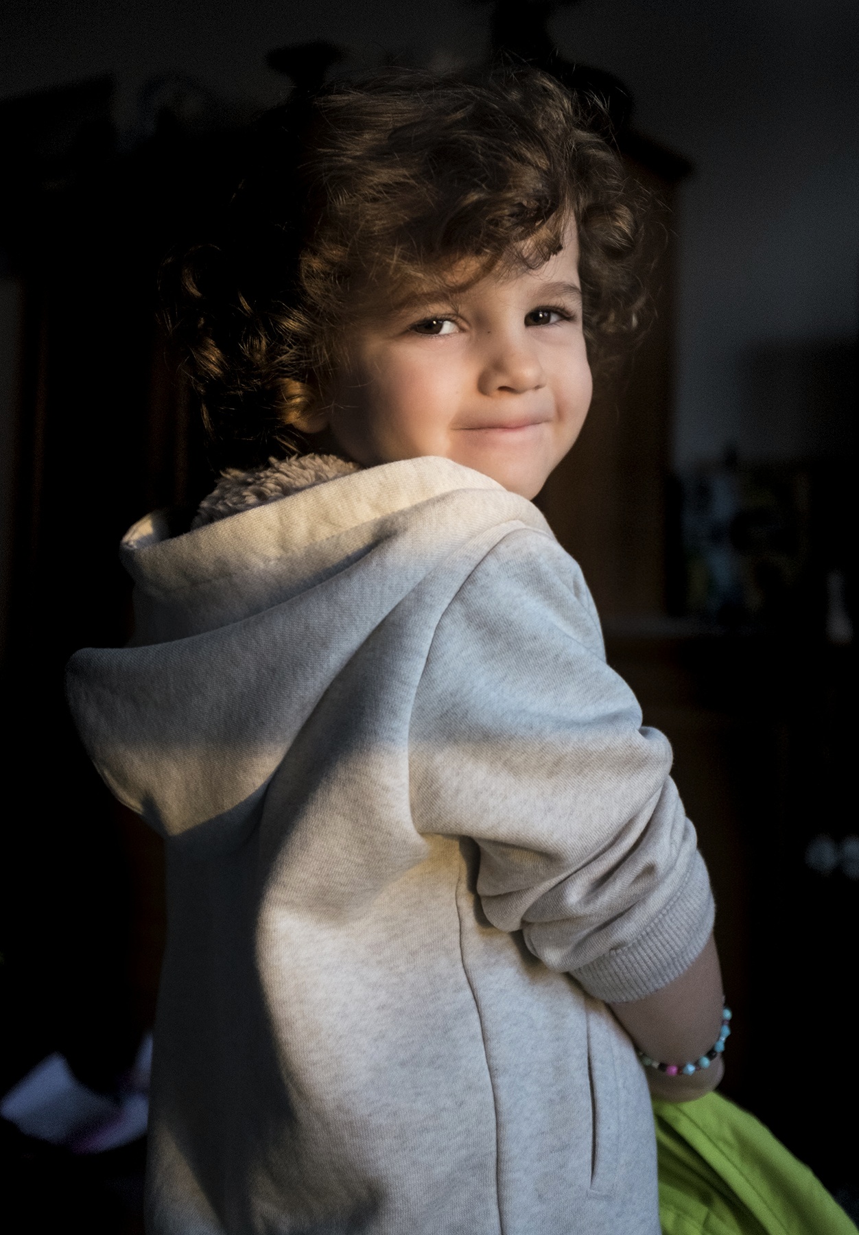 Mi piace molto, hai saputo cogliere con una bellissima luce questo tenerissimo bimbo, forse un pò birichino a giudicare dal sorriso. Mi piace molto per la luce, lo sguardo, ed il momento molto naturale come solo i bambini sanno fare. Complimenti e preferita !!!Ciao!!!
