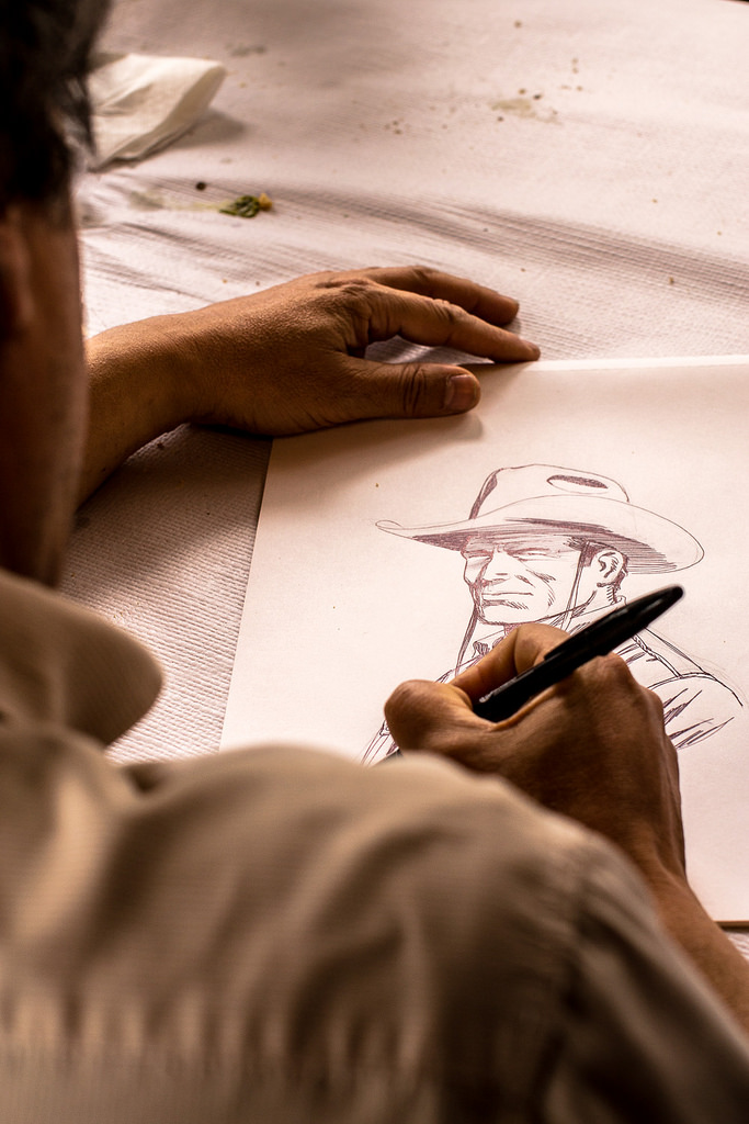 Un piacevolissimo scatto,nel riprendere il disegnatore mentre stà disegnando questo bel fumetto di Tex.. Un caro saluto e buon fine di serata.