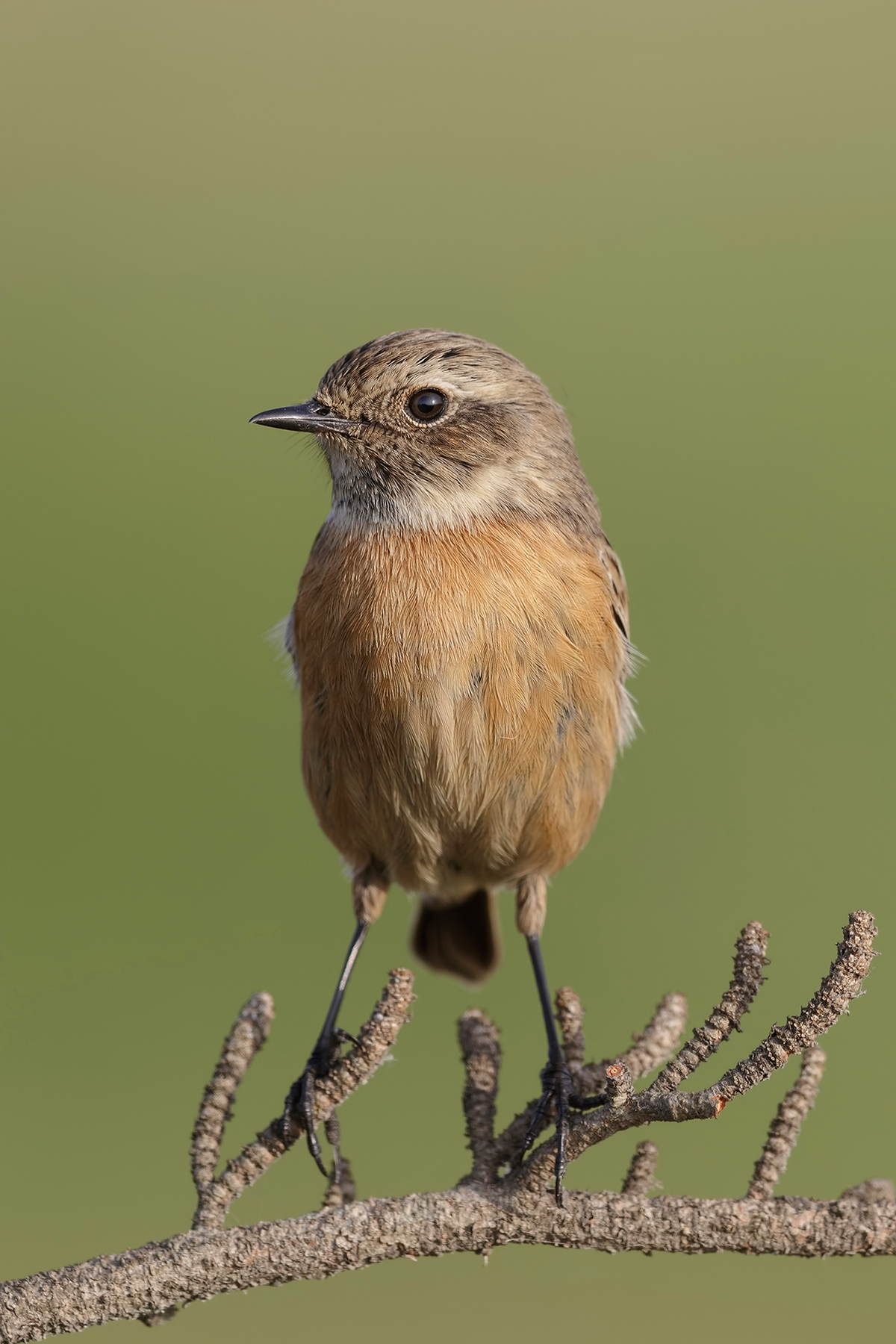Femmina di saltimpalo sopra rametto secco di abete argentato