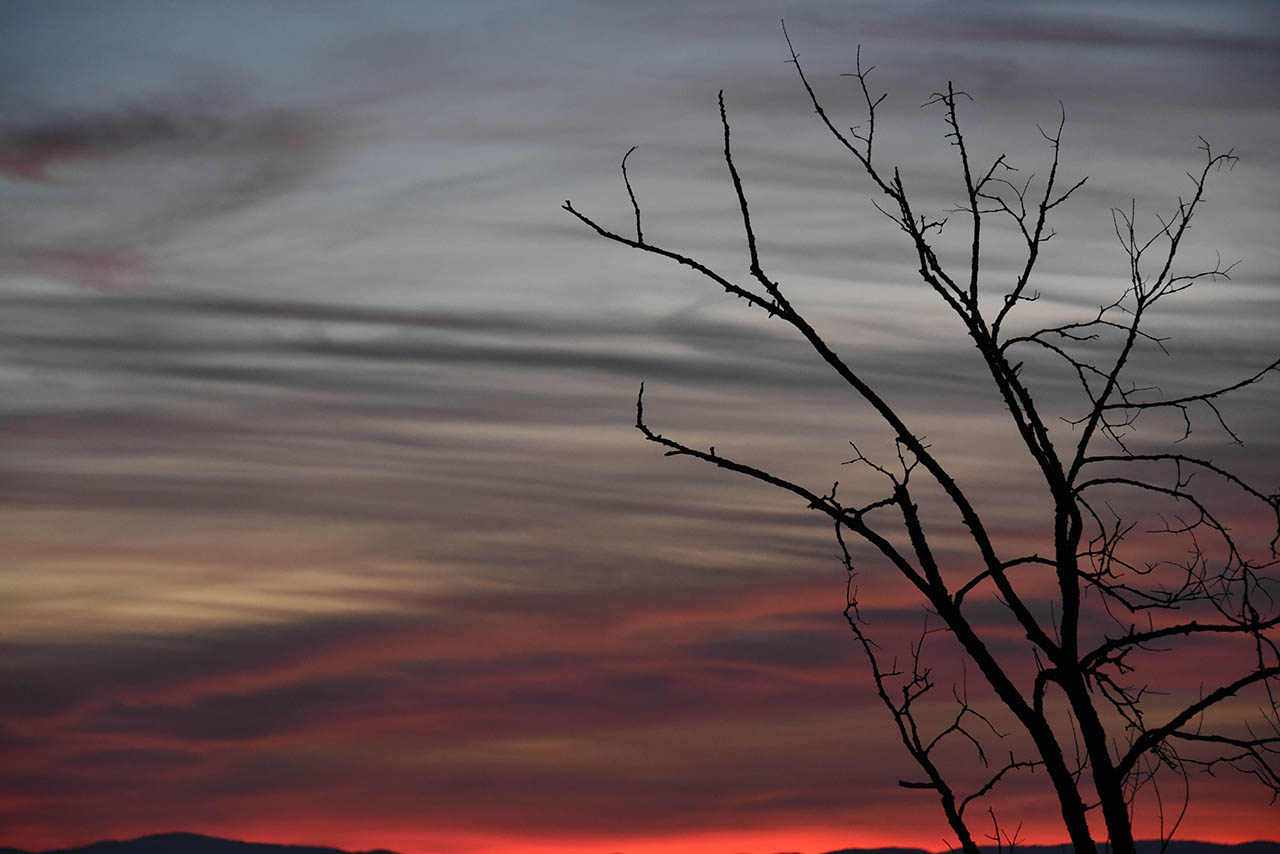 Son d'accordo con Giacomo per il taglio in basso,un po' incerto, o più monti inclusi o meglio esclusi. Questo cielo è spettacolare, dalle fredde pennellate delle cupe nubi alla lama infuocata che esplode in basso. Efficace la silhouette dell'albero che si staglia su questo scenario Ciao