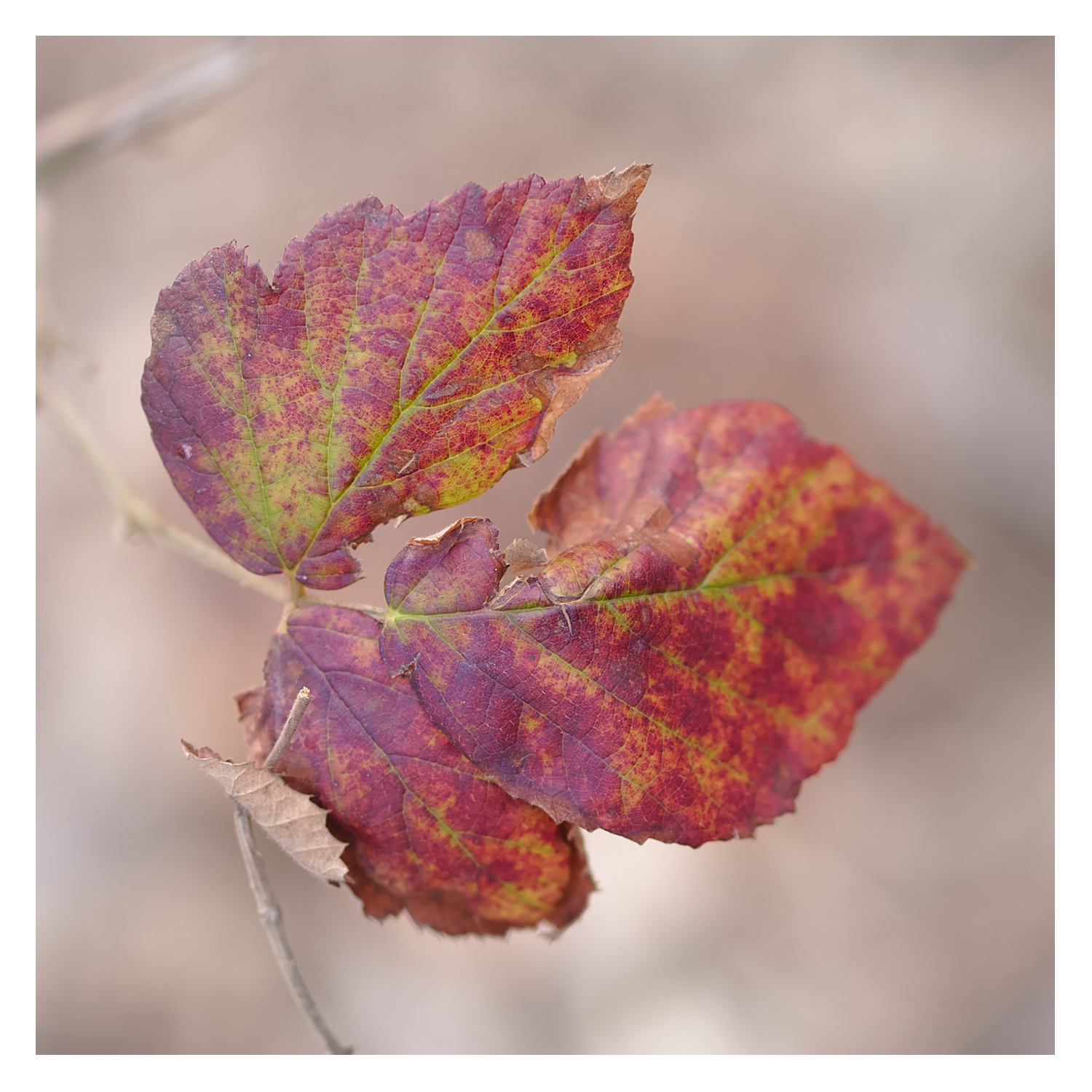 Trovo molto molto belli i colori di questa foglia,un buon dettaglio, ma a gusto mio, non esprimo giudizi tecnici perché non son ferrata in questo genere, credo avresti dovuto cercare una pdc maggiore,per avere a fuoco l 'intera superficie fogliare, a me i lembi fuori fuoco un po' disturbano.Forse avrei cercato anche una maggiore pulizia del frame,eliminando qualche rametto che più che aggiungere ruba attenzione. Il quadrato è azzeccato, ben riempito,anche se la ripresa risulta un poco statica Ciao