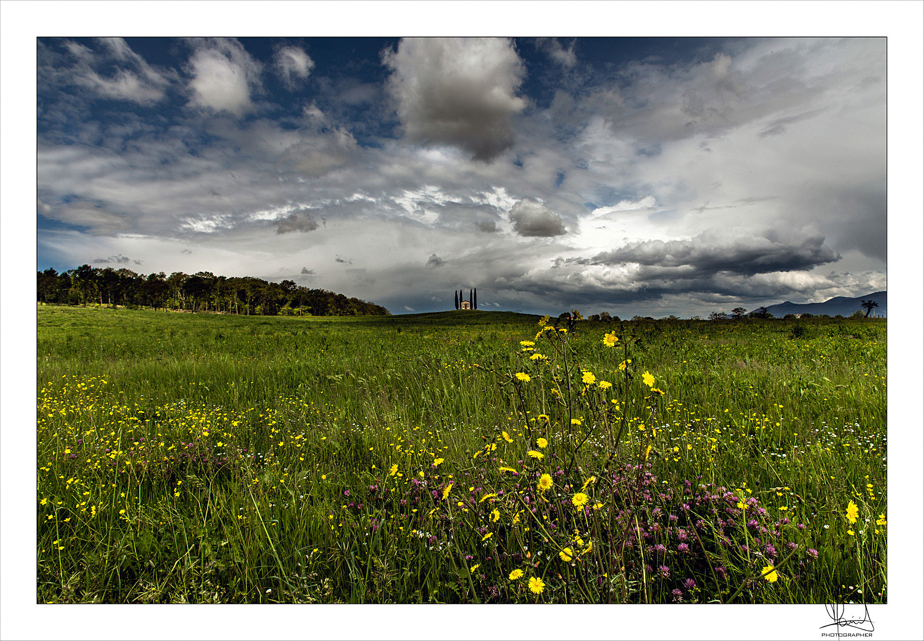 Se pur piccola, minuscola rispetto al resto, quella struttura centrale affiancata dai 4 cipressi, spicca in modo meraviglioso. Complice una composizione ideale.