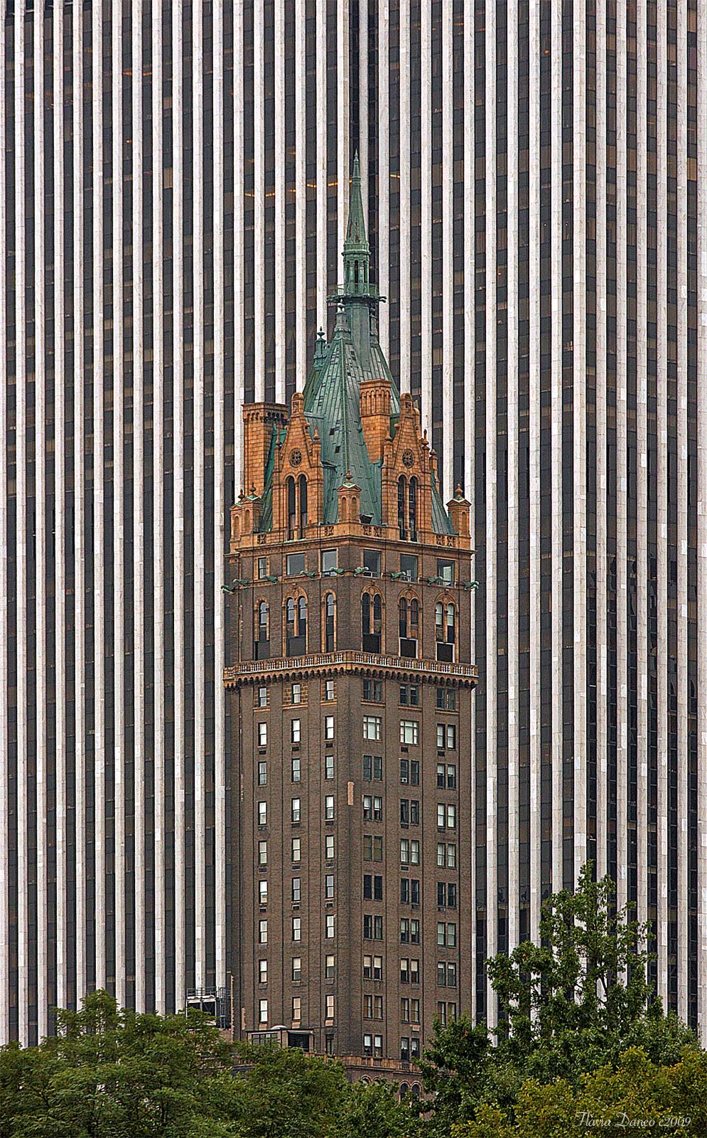 Linee bianche e nere come le divise dei carcerati, imprigionato da questo sostituto zebrato del cielo, l'antico palazzo svetta orgoglioso senza senso di inferiorità nei confronti del gigantesco antagonista che gli preclude la vista.