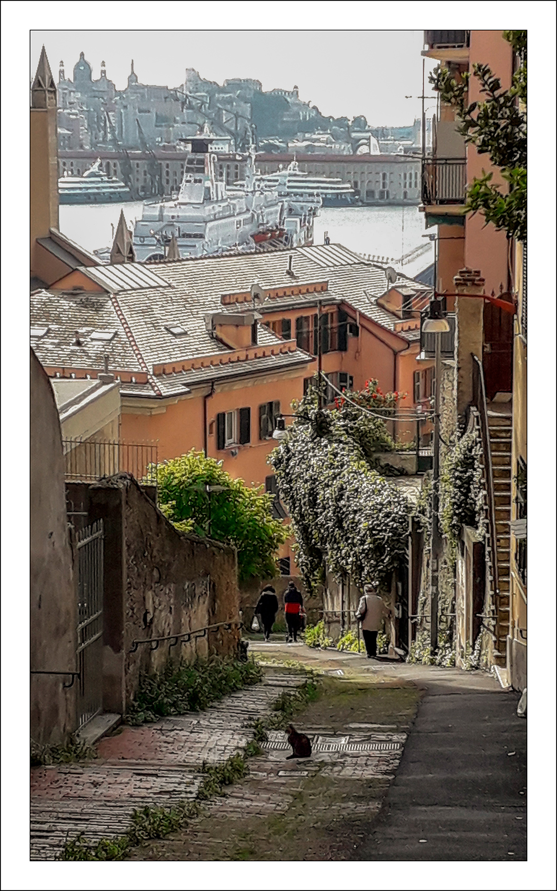 In effetti questa foto è un piccolo condensato di Genova e i richiami 'culturali' ci sono, è straordinario quanto sia evocativo un termine, Crêuza come Carruggi, hanno un immediato riscontro nella nostra memoria, non solo quella ligure.
