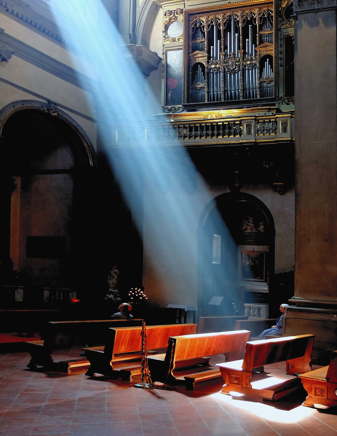 Invece, secondo me, il fascio di luce che colpisce la panca vuota è molto più evocativo, cosi ha un significato più forte.