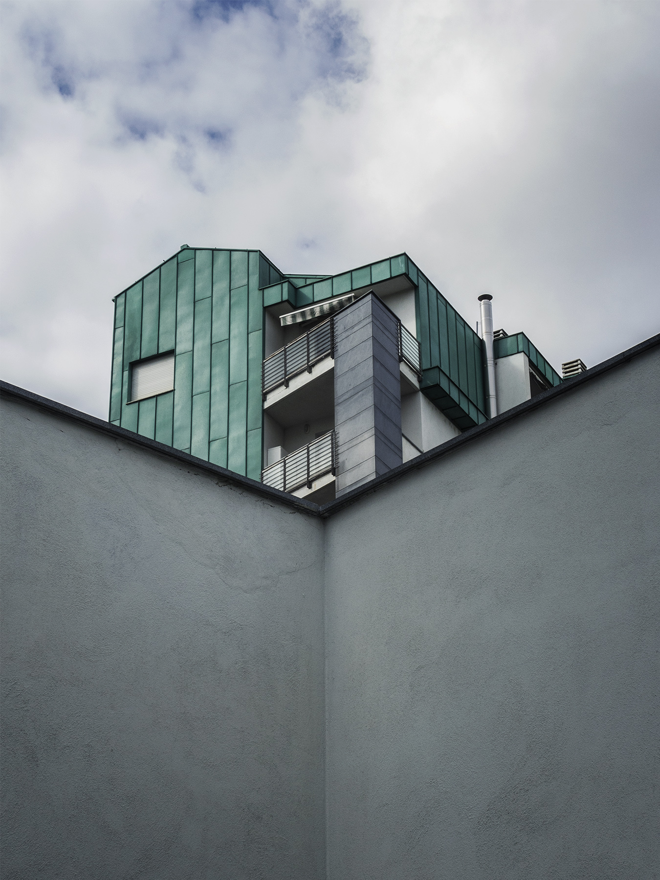 Interessante la composizione su più piani, in cui l'architettura è incastonata fra il muro in primo piano e il cielo sullo sfondo.