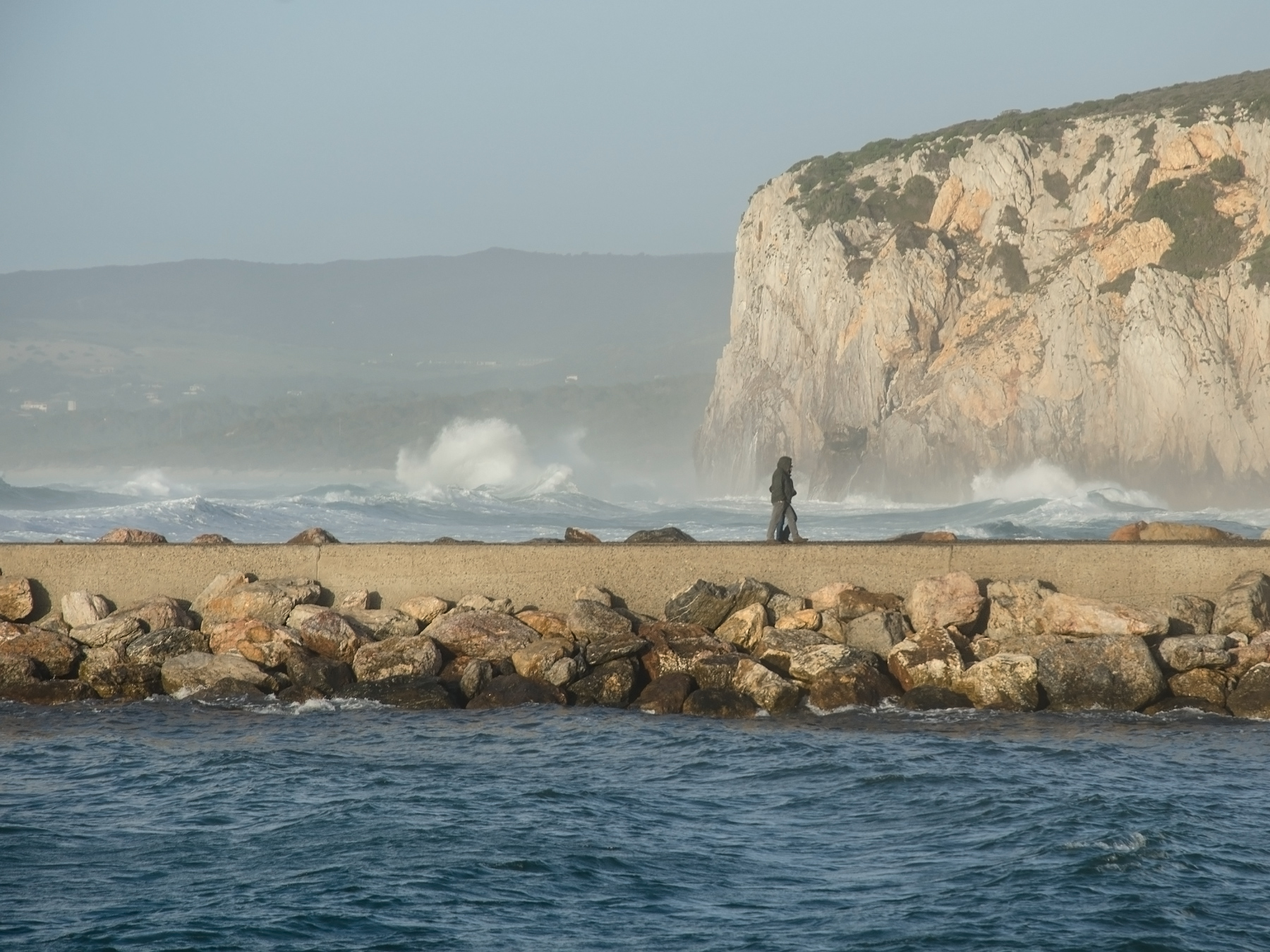 Cappuccio calato in testa e passo deciso noncurante nè del mare calmo alla sua destra nè di quello agitato alla sua mancina. Per me uno scatto perfettamente riuscito.  _________________ Giuseppe Zizzi |