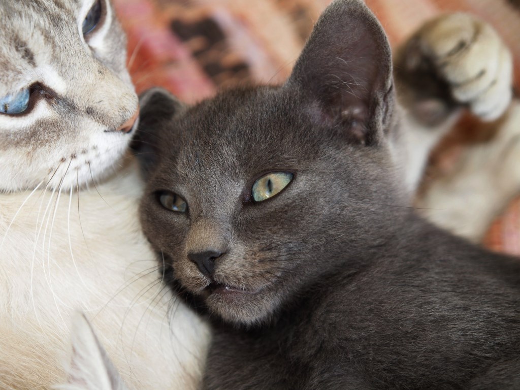 Io credo che cuore dello scatto sia più sulla tenerezza dei due soggetti nel loro interagire, più che su un generico riprendere due elementi faunistici... Per cui direi bene qui. Peccato per la punta dell'orecchio incisa dal bordo immagine e per il fuoco non esemplare su entrambi gli elementi. Carinissima la zampetta che si intravvede in abbraccio.