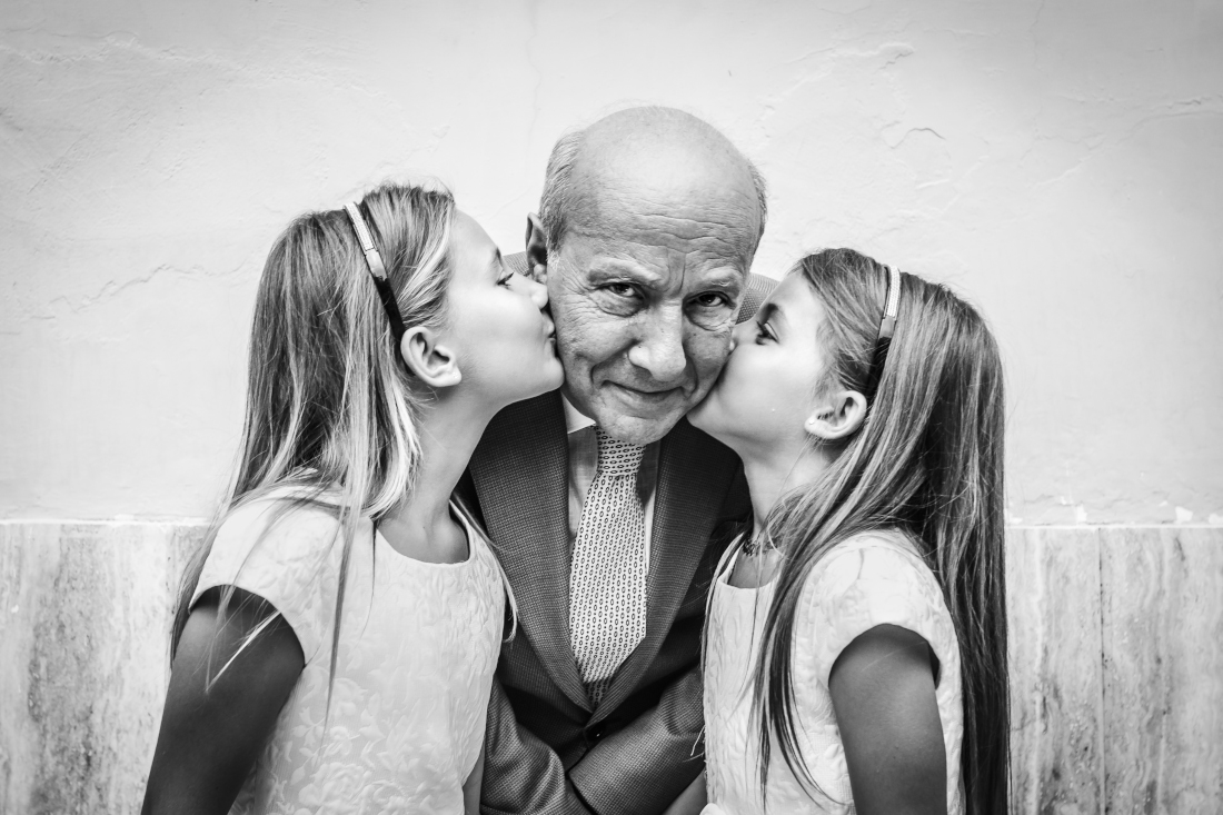 Bellissimo e amorevole i baci delle nipotine verso il nonno...piacevole scatto.