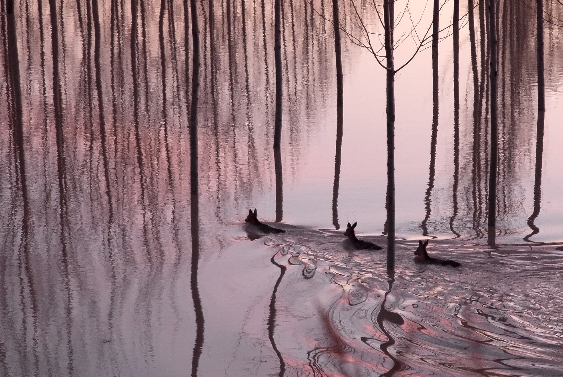 mentre scattavo al tramonto ho sentito un tonfo in acqua, tre caprioli si sono tuffati in golena ed hanno iniziato ad attraversarla a nuoto. Fatto qualche scatto al volo, questa la migliore del pacchetto..