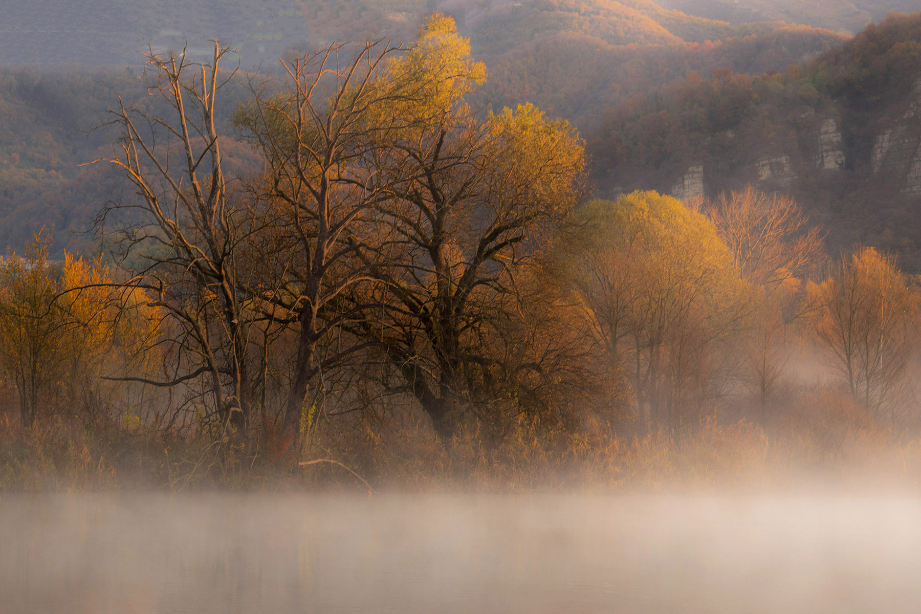 Bellissima la luce che esalta il colore delle foglie e che acuisce il contrasto con la nebbia candida. _________________ Giuseppe Zizzi |