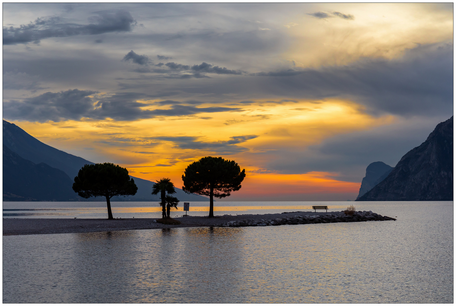 Bellissimo scorcio e colori stupendi. Sicuramente lago di Garda. Forse avrei clonato quel cartello tra gli alberi che "sporca" la naturalezza del luogo.