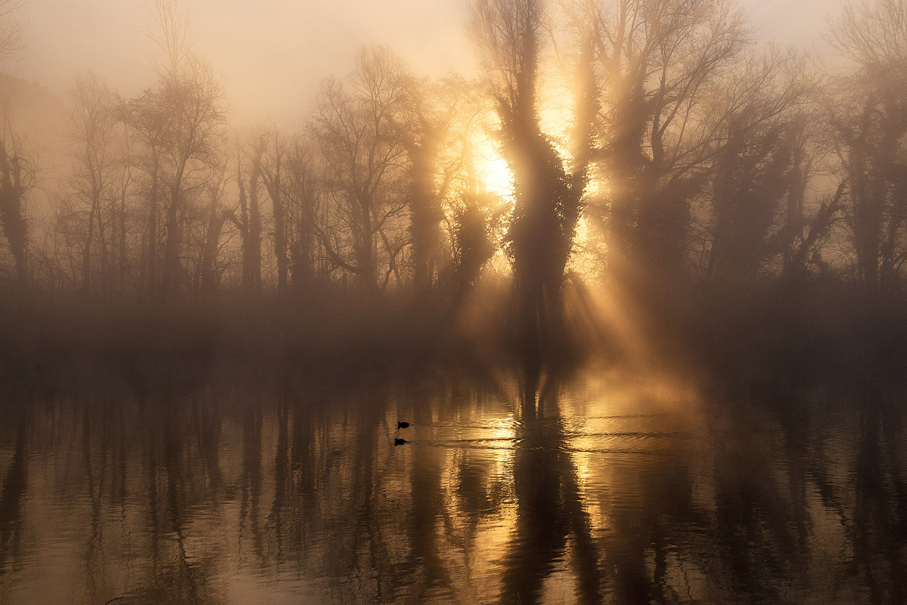 Bella, resa unica dalle anatre che viaggiano in parallelo.